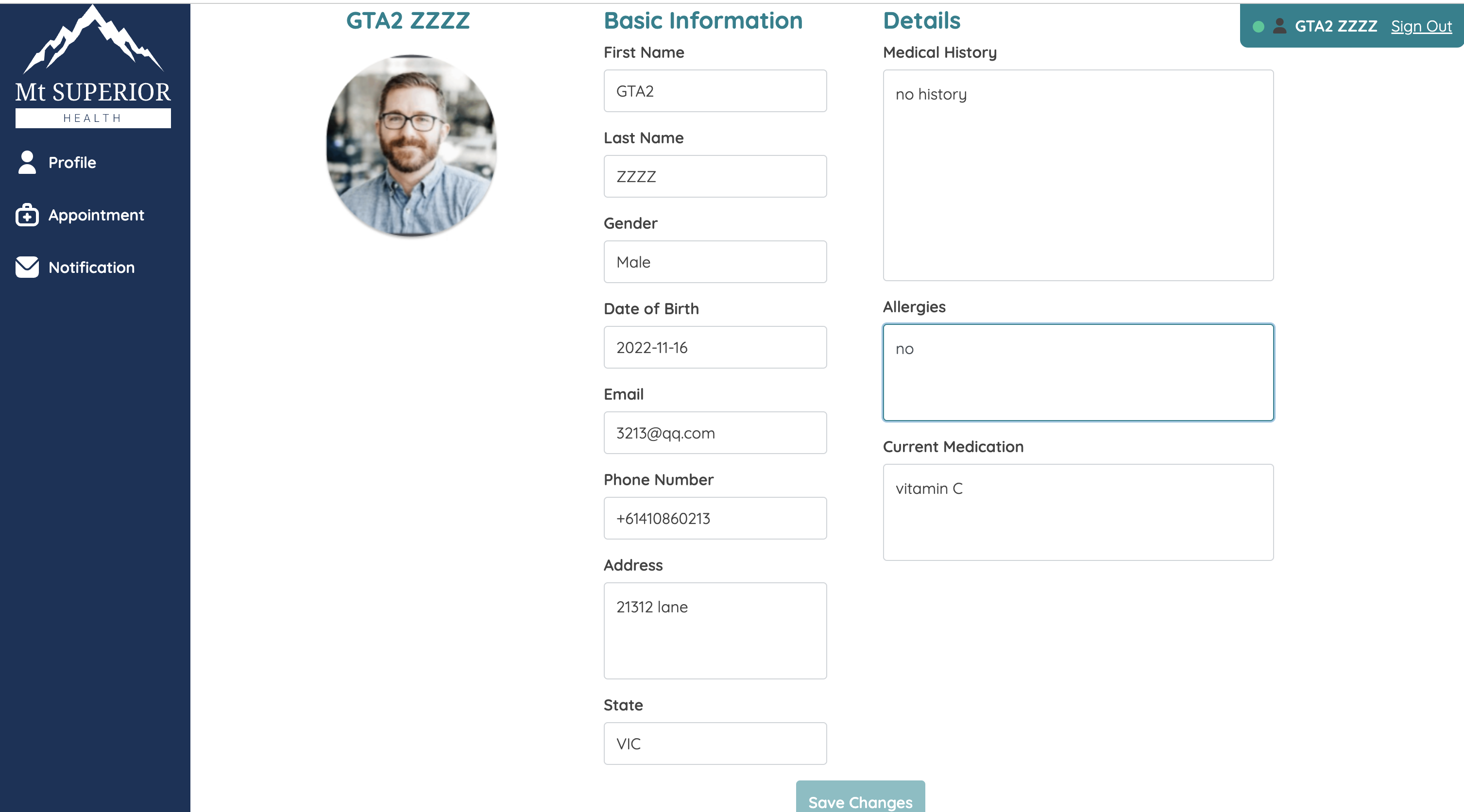 Patient personal information viewing and editing