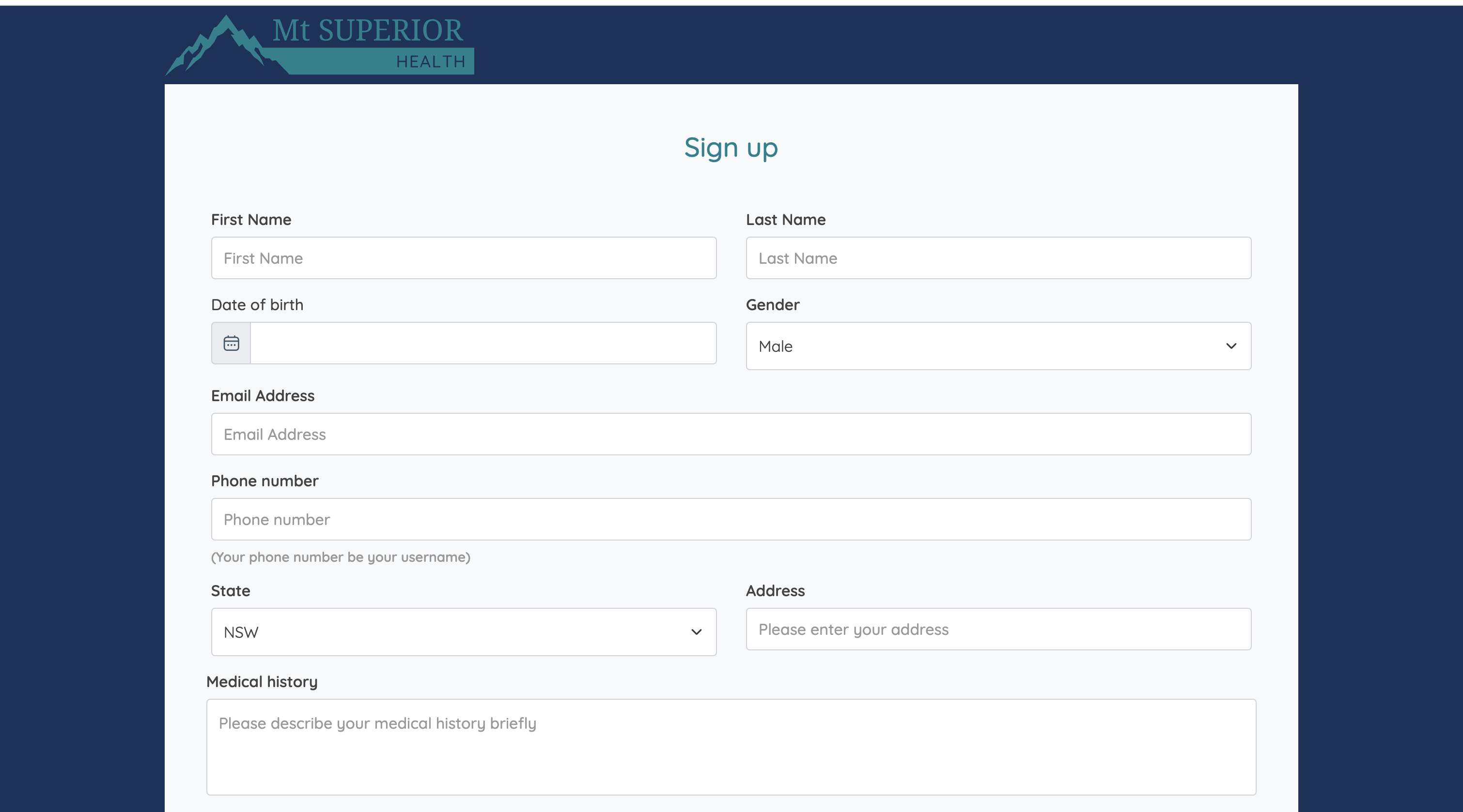 New patients using the platform for the first time can register an account. At the same time of registering the account, patients are required to fill in some medical information, which will be stored on our FHIR server.